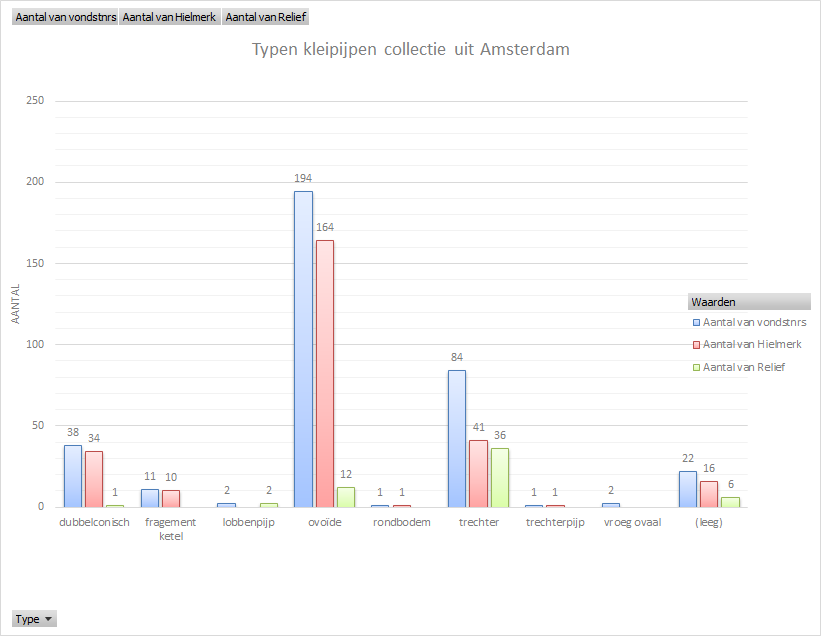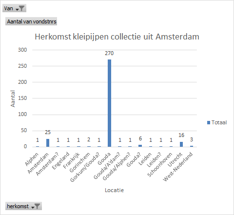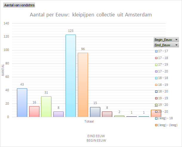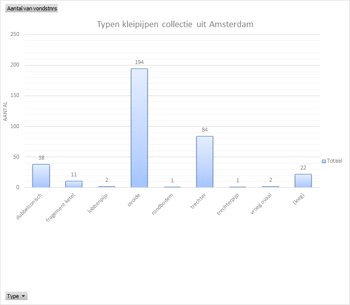 Als voorbeeld van een onderzoek naar kleipijpen laten we hieronder enige resultaten zien van een deel-collectie uit Amsterdam; Uiteraard horen daar ook een paar plaatjes bij, maar die worden later ingevoegd.