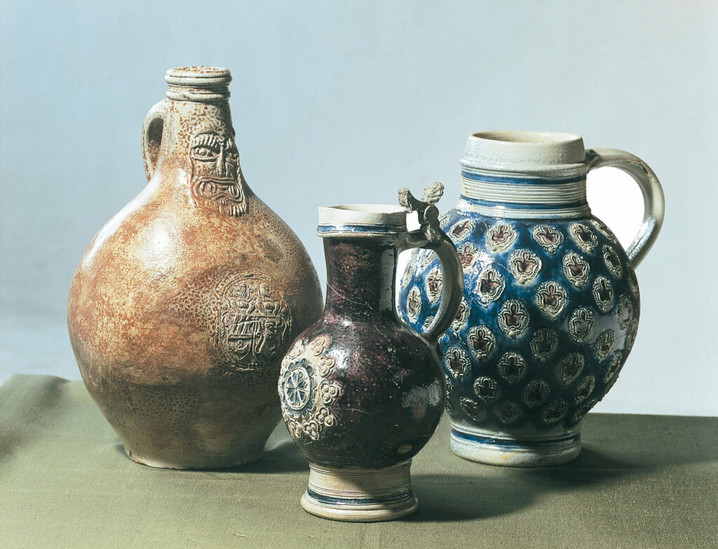 Vanaf de 16e eeuw ontstaan de baardmankruiken van Keulen-Frechen, Kreussen (bruin) en Nassau (blauw). Mogelijk naar Romeins voorbeeld (pot museum Kan, 2e helft 1e eeuw). Het product met kenmerkende kobaltblauwe decoraties werd in het Westerwald bij Siegburg geproduceerd.