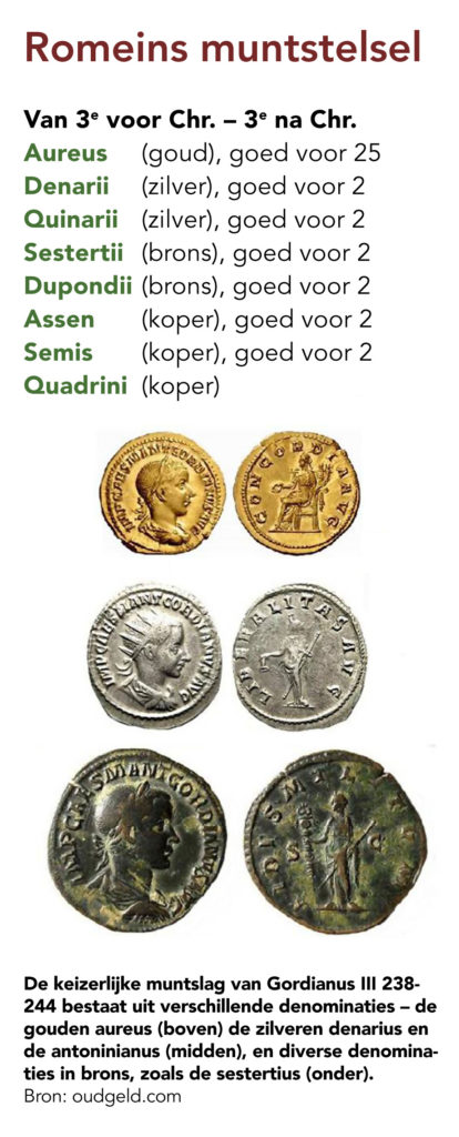 Een beschrijving van het Romeinse muntstelsel vind u onder meer ook op Wikipedia, of op de site Historiek.