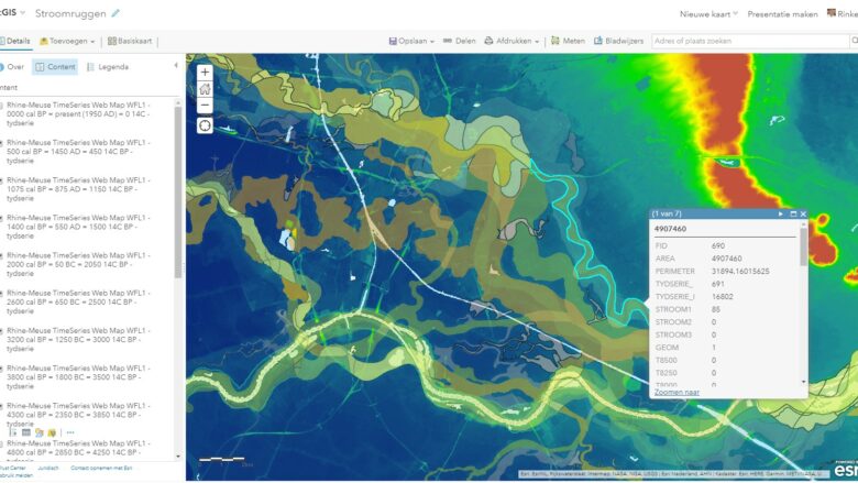 En een web applicatie met de complete geo-morfologie van het Nederlandse rivierengebied is 👉 hier 👈 te vinden, maar … Als voorbeeld ziet u hieronder eerst een schermafdruk; en daaronder de on-line interactieve versie! Klikken maar …