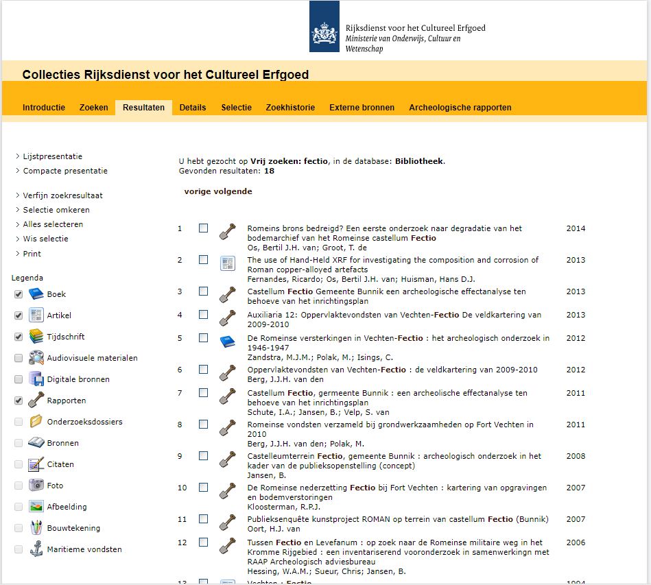 Voorbeeld zoeken in de Bibliotheek van het RCE:
