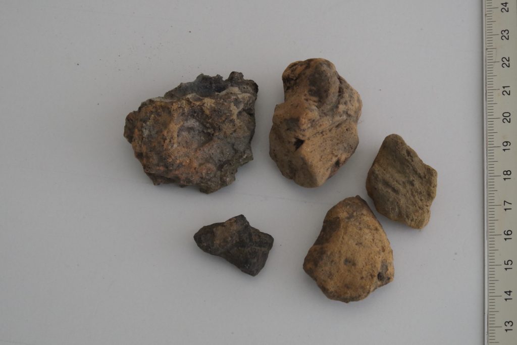 • 1 slak: verbrand aardewerk, gedeeltelijk verglaasd.
