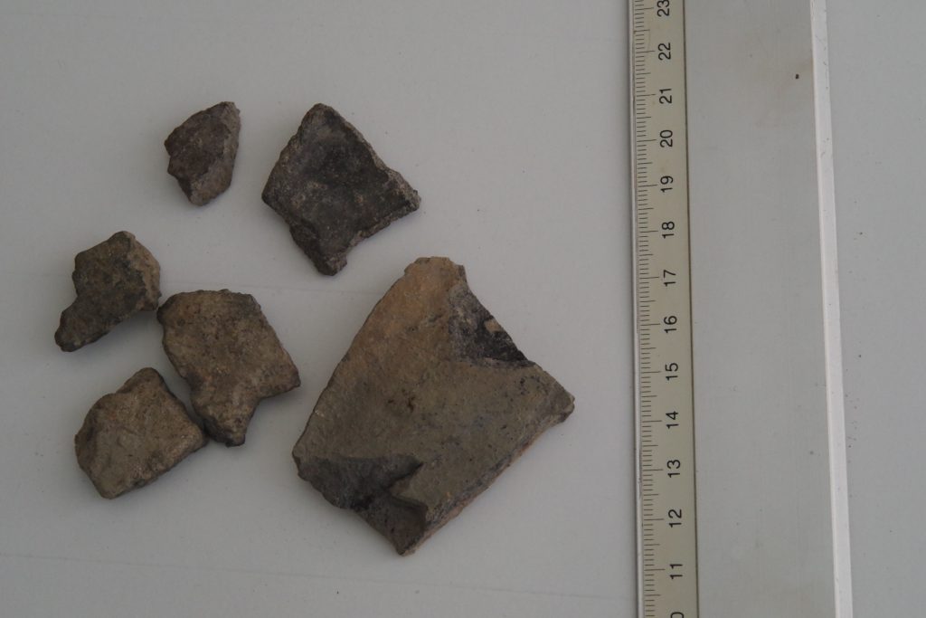• 6 fragmenten grijsbakkend handgevorm aardewerk