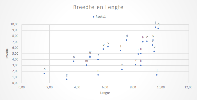 Dan maar op een X-Y grafiek, met op X de lengte, en op Y de breedte?