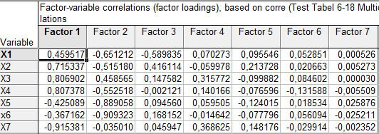 En we kunnen ook zien uit de uitslag van onze rekenarij, dat bijvoorbeeld Factor 1 in feite een samenraapsel is van de originele eigenschappen X1 t.m. X7 van de blokjes.
