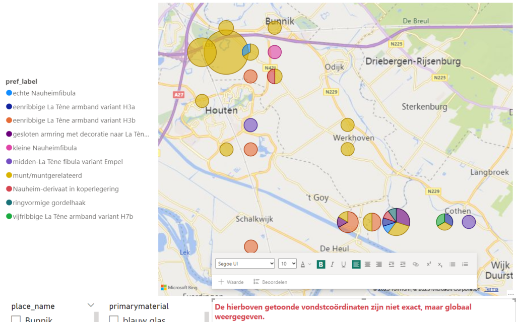 Recent (juli 2023) is er nog extra informatie uit het PAN registratiesysteem binnengekomen; een dataset met alle in PAN geregistreerde vondsten specifiek uit de la Tène periode in het Kromme Rijngebied; dat gaf het volgende beeld: